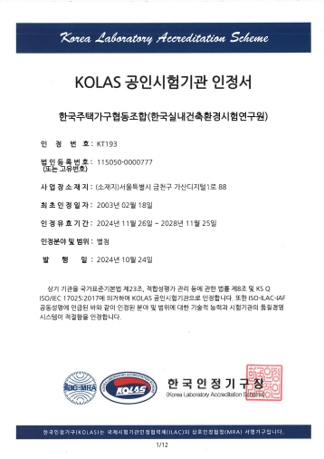 KOLAS 공인시험기관 인정서
